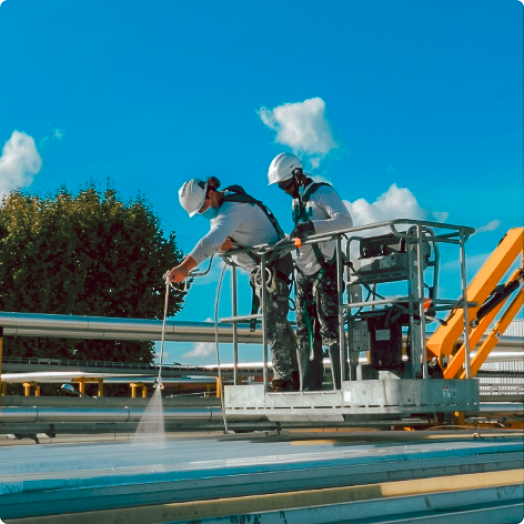 CoolRoof est notre solution phare pour la protection des toitures contre la chaleur. Ce revêtement combine deux produits complémentaires pour une application mécanique (airless) ou manuelle (rouleau, brosse) :